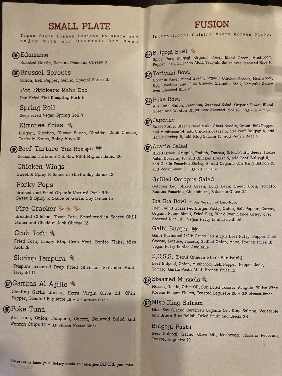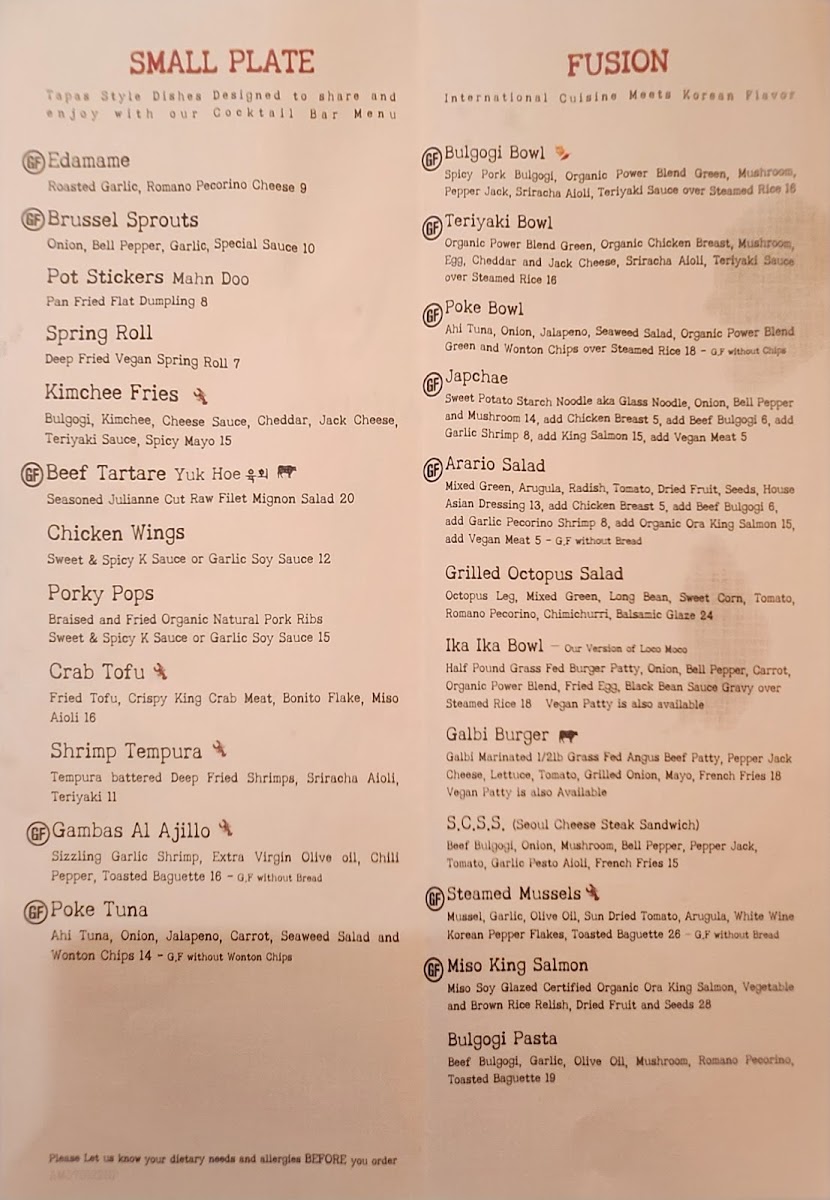The star of the show, of course, is the menu, boasting a selection of creatively crafted dishes that are bursting with flavor. Come hungry to indulge in the Bulgogi Bowl, where succulent bulgogi is accompanied by an organic power blend of greens and sriracha, all resting on a bed of perfectly cooked rice for just $13.00. If you're in the mood for something lighter, the Poke Bowl is a fantastic choice, featuring fresh Ahi tuna, crisp vegetables, and seaweed salad that dance harmoniously together atop a rice foundation, available for $14.00.